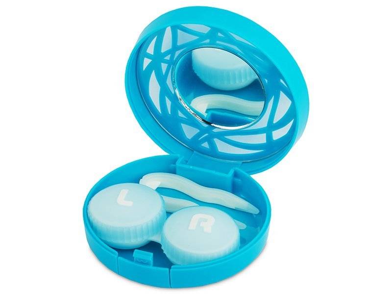 Étui à lentilles avec miroir - Bleu Orné